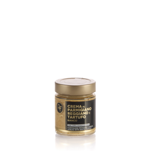 Crema aus Parmigiano Reggiano DOP mit weißem Trüffel, Appennino Food. Eine Zubereitung, die die Exzellenz des Parmigiano Reggiano DOP mit weißem Trüffel kombiniert und eine Creme mit reichhaltigem und unverwechselbarem Geschmack schafft.