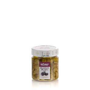 Gegrillte Auberginen in Öl, De Carlo. Ein Produkt, das die mediterrane Tradition feiert und mit Sorgfalt zubereitet wird, um die authentischen Aromen hervorzuheben.