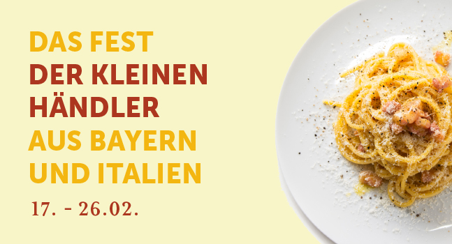Vom 17. bis zum 26. Februar feiern wir gemeinsam mit kleinen Händlern aus Bayern und Italien einzigartige Gebiete und handwerkliche Produkte. Es erwarten dich eine Vielzahl an Verkostungen in unserem Markt sowie ein besonderes Abendessen im Restaurant.