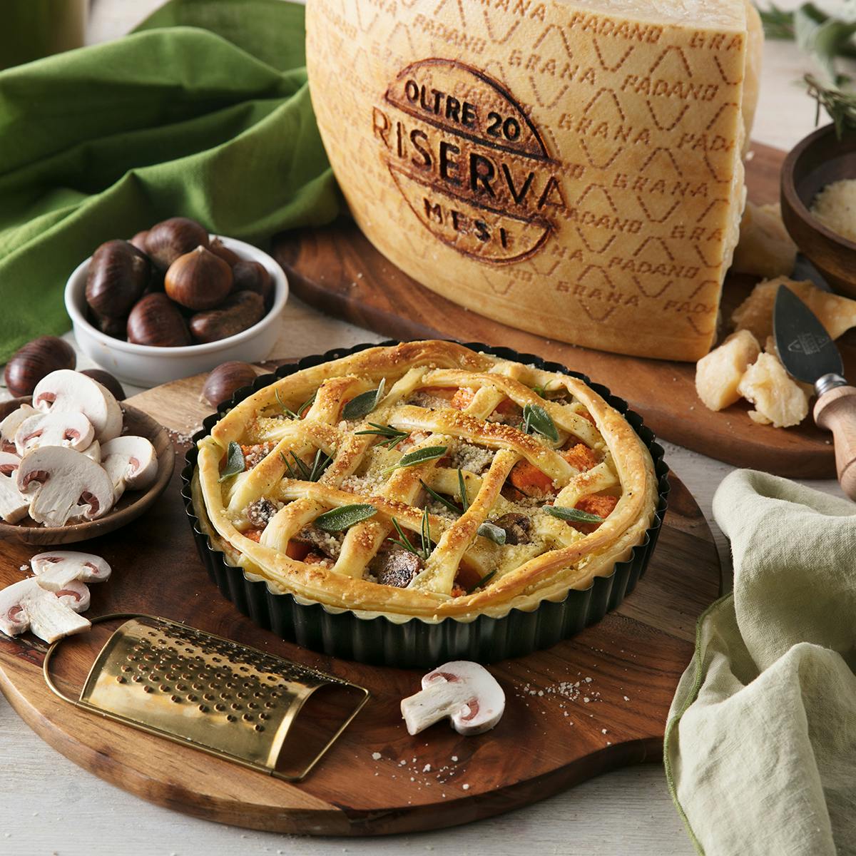 Diese herzhafte Quiche bringt den Geschmack des Herbstes direkt auf den Teller: aromatische Pilze, süßer Kürbis, nussige Esskastanien und die würzige Cremigkeit von Grana Padano Riserva machen sie zu einem echten Highlight. Perfekt für gemütliche Abende, Familienessen oder einen Brunch mit Freunden.
