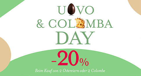 Nur am 01.04. feiern wir den Uovo & Colomba Day und schenken dir -20% Rabatt beim Kauf von 2 Colombe oder 2 Ostereiern!