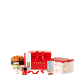 Geschenkkorb Die Authentische von Eataly ist eine Hommage an die Aromen, die den italienischen Tisch einzigartig machen. Eine Reise zwischen süß und herzhaft, die den ganzen Geschmack der Festzeit mit sich bringt, signiert von Eataly. Von 100 % italienischen Bucatini mit Amatriciana-Sauce bis hin zum klassischen Panettone, von Pistaziencreme bis zur Gianduja-Schokoladentafel – jedes Produkt ist eine Einladung, Tradition mit Genuss und Geselligkeit neu zu entdecken. Perfekt als Geschenk für Liebhaber guter Küche oder zum Teilen mit den Liebsten während der Weihnachtszeit.
