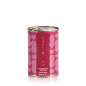 Kirschtomaten, Italianavera. Produkt, das ausschließlich aus ausgewählten italienischen Tomaten hergestellt und nach traditioneller Methode verarbeitet wird.