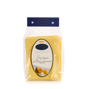 Lasagne aus Hartweizengrieß mit Ei, Alfieri Spezialitäten. Eine Pasta, die die italienische Tradition hervorhebt, hergestellt aus Hartweizengrieß und frischen pasteurisierten Eiern.