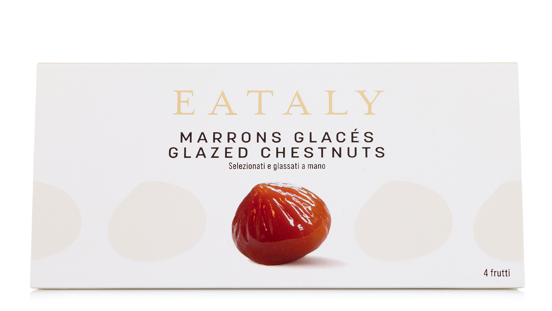 Die Marrons Glacés 4 Stück von Eataly sind die Quintessenz weihnachtlicher Eleganz im Mini-Format, perfekt als raffiniertes Geschenk oder für einen Moment purer persönlicher Süße. Jede Marone wird langsam im Sirup getaucht, bis sie die richtige Konsistenz und einen Glanz erreicht, der auf den ersten Blick verzaubert.