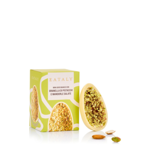 Das überraschende Mini Weißes Ei mit Pistazien- und gesalzenen Mandelsplittern von Eataly ist das österliche Angebot für Liebhaber kühner Kontraste.