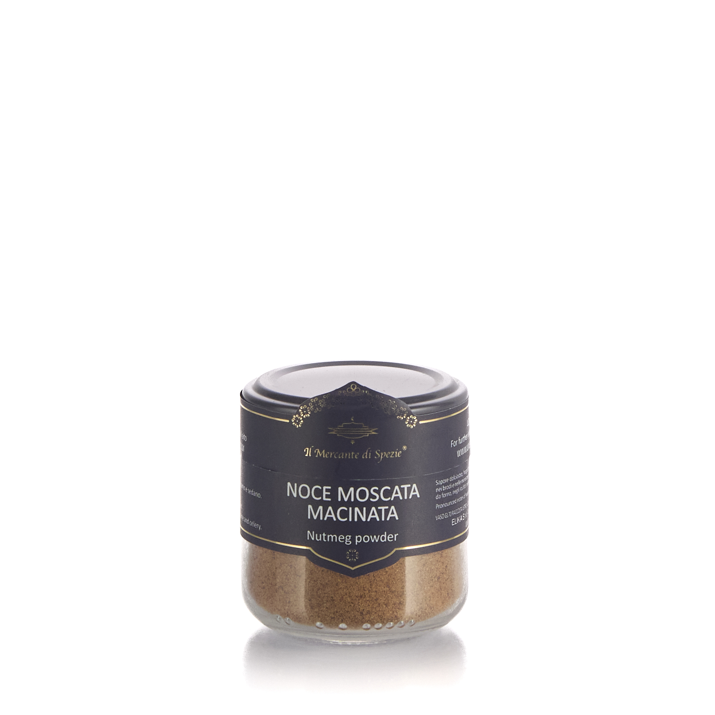 Gemahlene Muskatnuss, Il Mercante di Spezie. Dieses edle Gewürz zeichnet sich durch seinen süßlichen, duftenden Charakter mit ausgeprägten Noten von süßem Holz aus.
