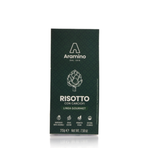 Risotto mit Artischocken, Aramino. Ein Gericht aus der Gourmet-Linie, das natürliche und ausgewählte Zutaten kombiniert, um eine einfache und schmackhafte Zubereitung zu ermöglichen – ideal für alle, die ein raffiniertes kulinarisches Erlebnis suchen.