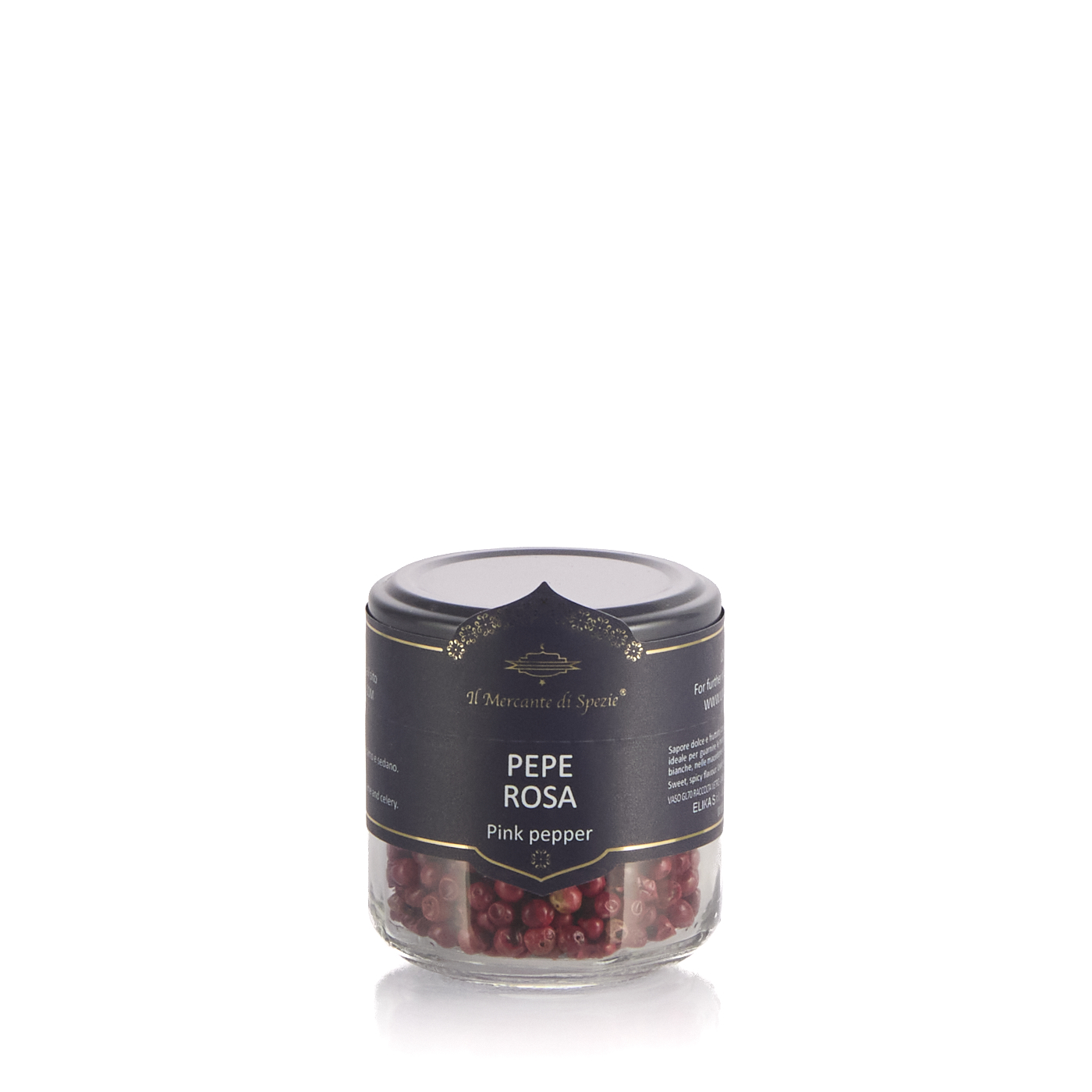 Rosa Pfeffer, Il Mercante di Spezie. Mit seinem süßen und fruchtigen Geschmack sowie einer leichten Schärfe ist dieses Produkt ideal, um eine Vielzahl von Gerichten zu verfeinern.