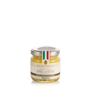 Sommertrüffel-Butter, SaviniTartufi. Ein Produkt, das die Cremigkeit von Butter mit dem raffinierten Geschmack des Sommertrüffels vereint – ideal, um einfache und anspruchsvolle Gerichte zu verfeinern.