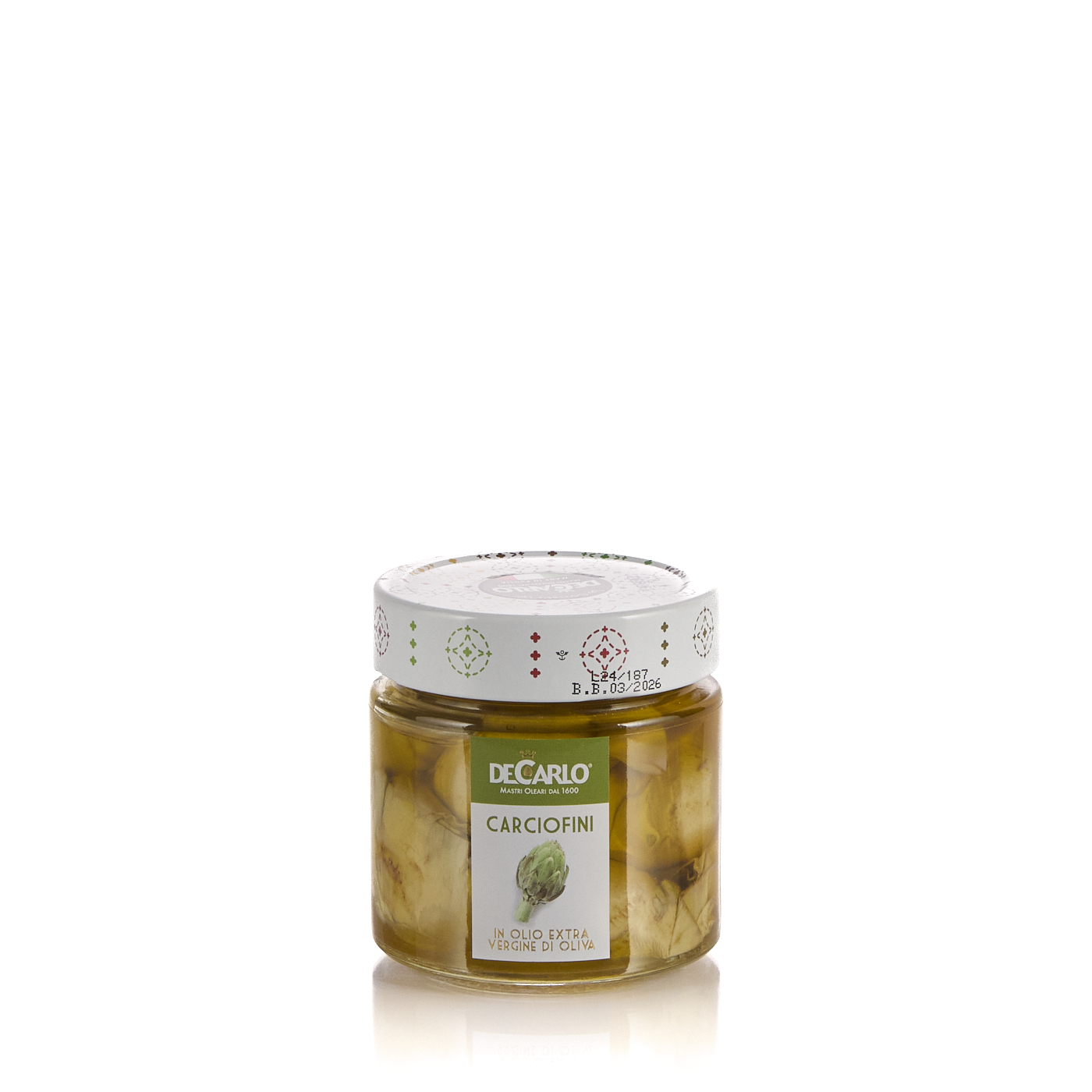 Artichokes in Extra Virgin Olive Oil, De Carlo. A product that celebrates Italian tradition, featuring carefully selected artichokes immersed in extra virgin olive oil.