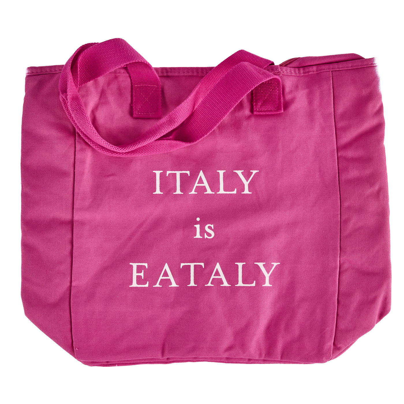 Canvas Bag, Eataly. A versatile accessory with a modern design, featuring a vibrant fuchsia canvas with white lettering that reflects the brand's unique style.