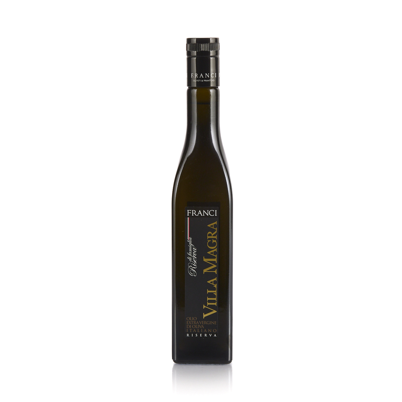 Extra Virgin Olive Oil Reserve, Frantoio Franci. A superior category oil obtained directly from olives through mechanical processes, produced in Tuscany.