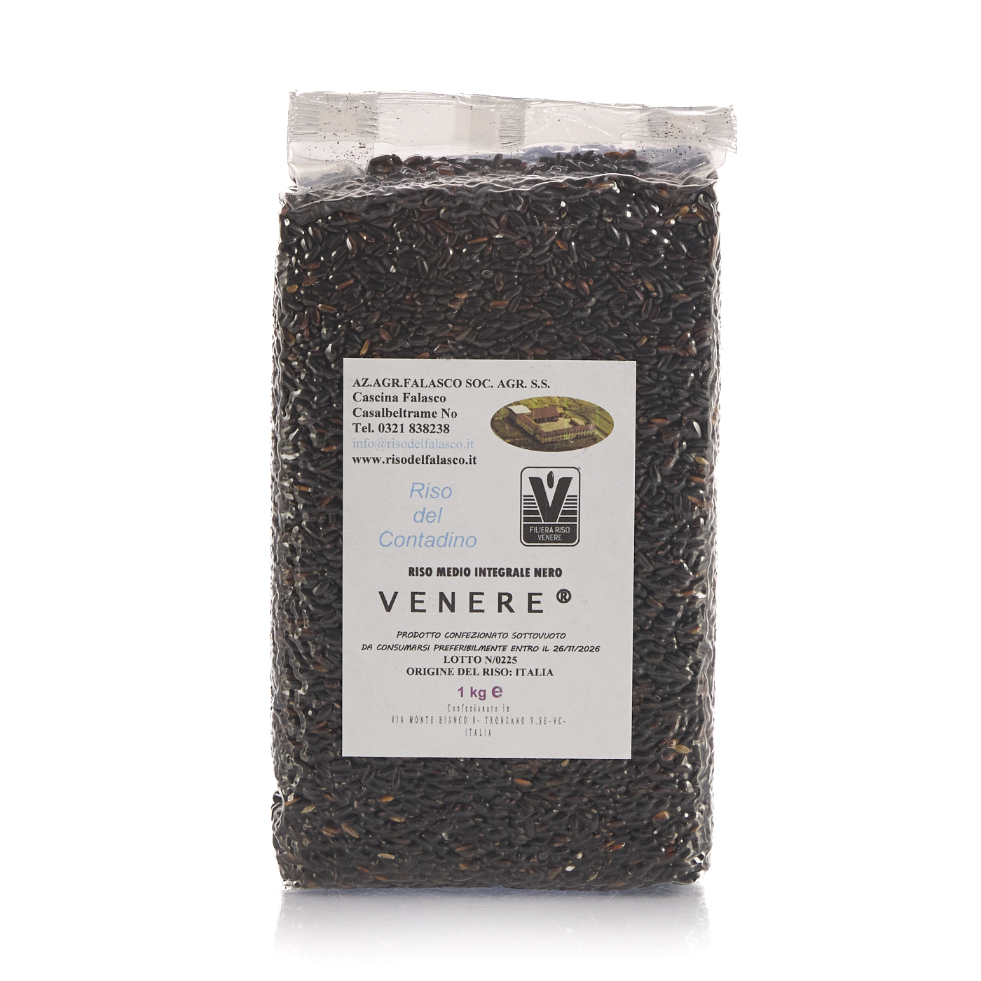 Wholegrain Black Rice, Riso del Falasco. A vacuum-packed product designed to preserve its freshness and quality, perfect for those seeking an authentic and versatile food.