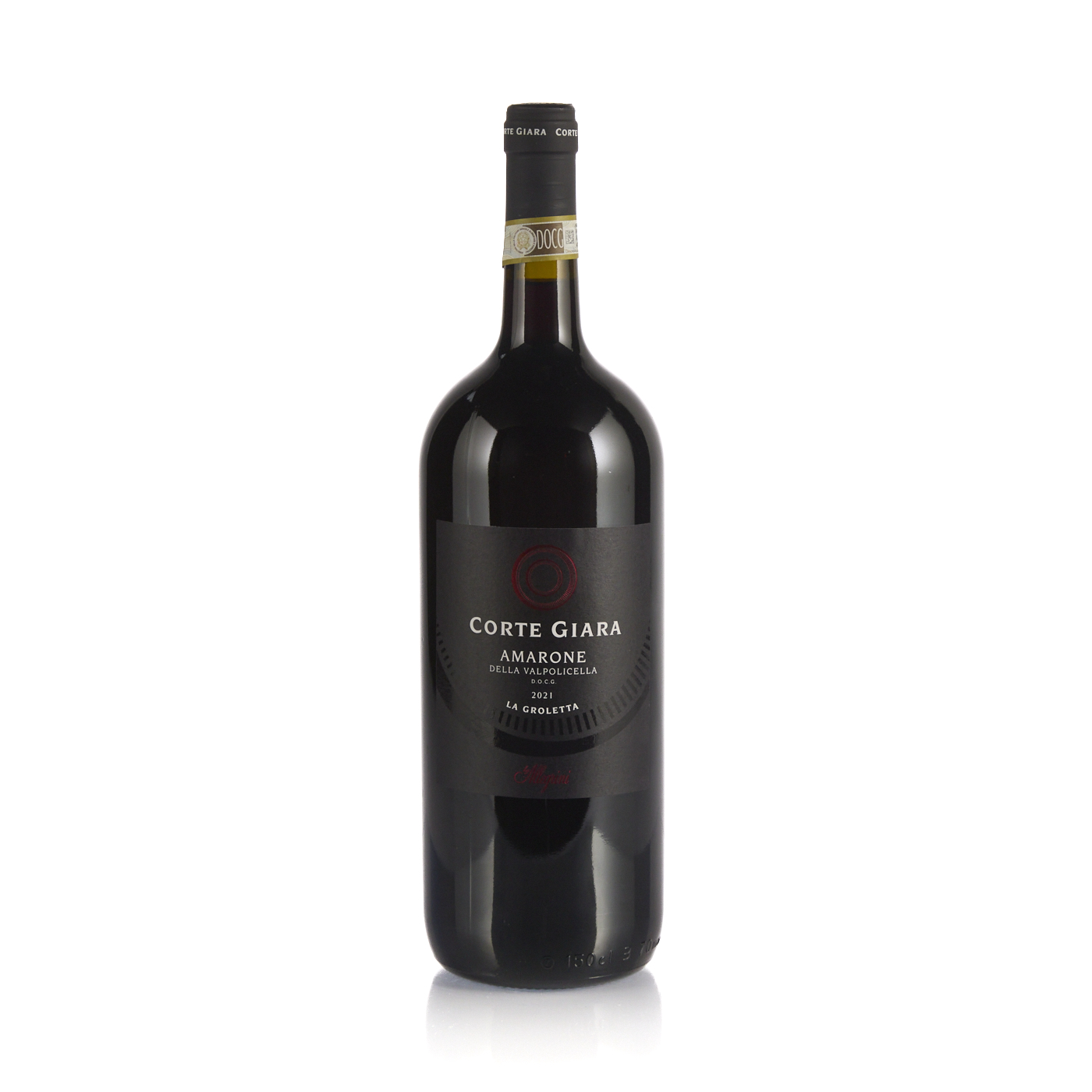 Amarone della Valpolicella DOCG, Corte Giara. Un vino rosso che racchiude i profumi, la rotondità e la maturità delle migliori uve della Valpolicella, vinificate dopo il tradizionale periodo di appassimento con una tecnica distintiva del territorio.