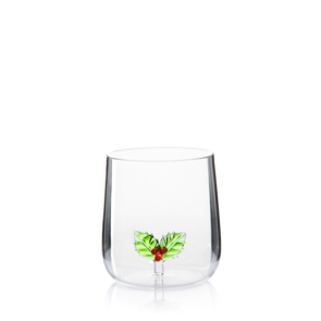 Il Bicchiere Acqua Inside Agrifoglio di Excélsa è un omaggio alle feste e alla magia del Natale. Realizzato in vetro borosilicato trasparente, si distingue per il delicato agrifoglio decorativo con bacche rosse e foglie verdi racchiuso al suo interno, un dettaglio che dona un tocco elegante e festoso a ogni tavola.