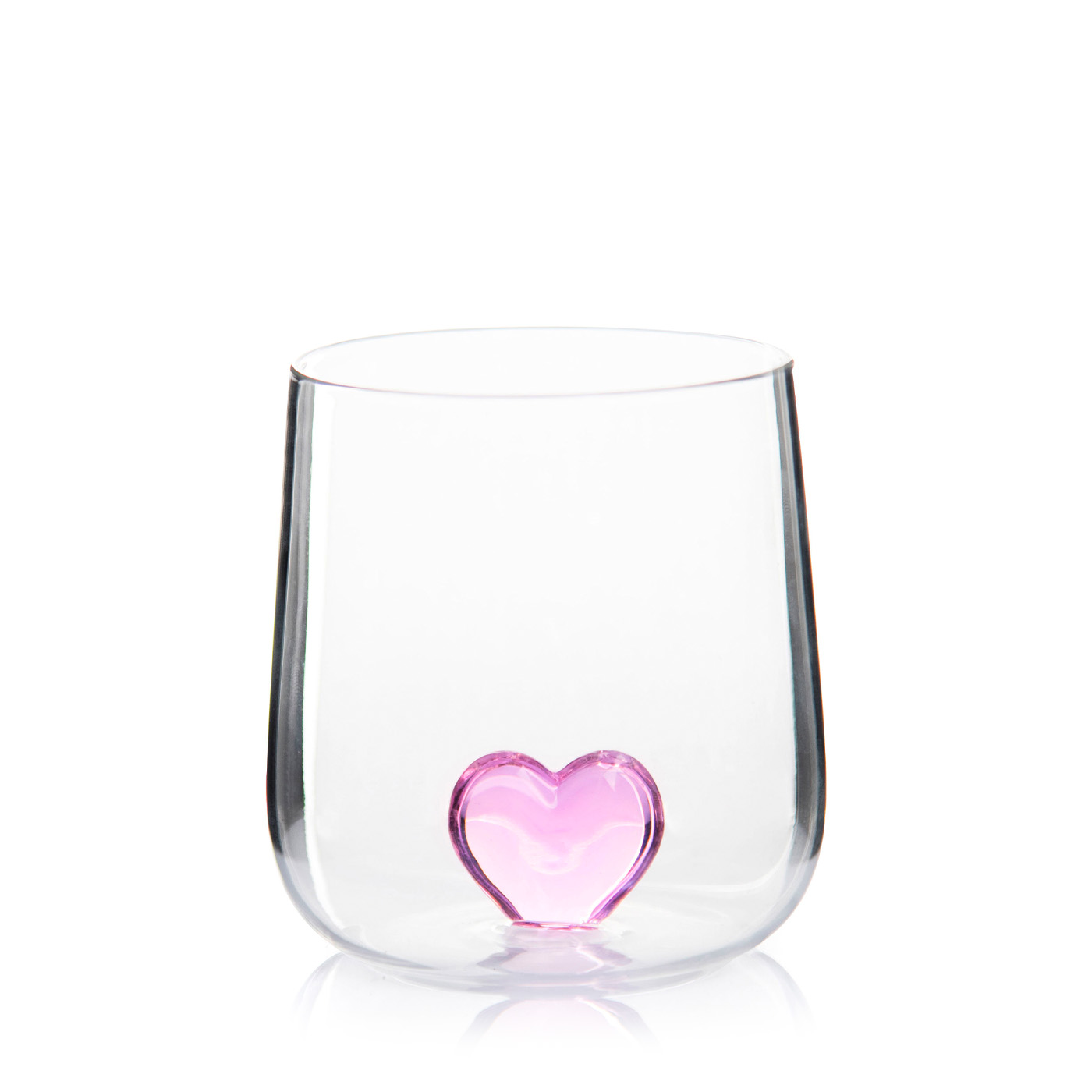 La capienza da 45 cl lo rende adatto a diverse bevande, dall’acqua ai succhi, fino a cocktail e drink analcolici. La forma essenziale valorizza il contenuto, mentre il cuore interno aggiunge una nota visiva che cattura lo sguardo e invita a usarlo ogni giorno ma soprattutto nelle ricorrenze romantiche.