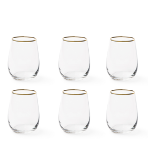 Il bordo dorato riflette la luce e crea un effetto prezioso che trasforma anche l’acqua in un piccolo gesto di stile. Perfetti da abbinare a tovaglie colorate o accessori a contrasto, si adattano con facilità a ogni tipo di mise en place.
