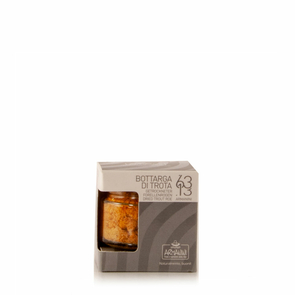 Più raro e pregiato della classica bottarga, questo prodotto ha anche un sapore decisamente più delicato e raffinato. La sua qualità dipende da un processo di lavorazione lungo ed accurato: la sacca ovarica della trota viene lavata e messa in una soluzione di acqua e sale, in modo da non aggredire il sapore naturale delle uova. L'essiccatura avviene in un luogo caldo e asciutto, fino a quando il prodotto non è perfettamente secco, pronto per essere macinato in polvere e confezionato.