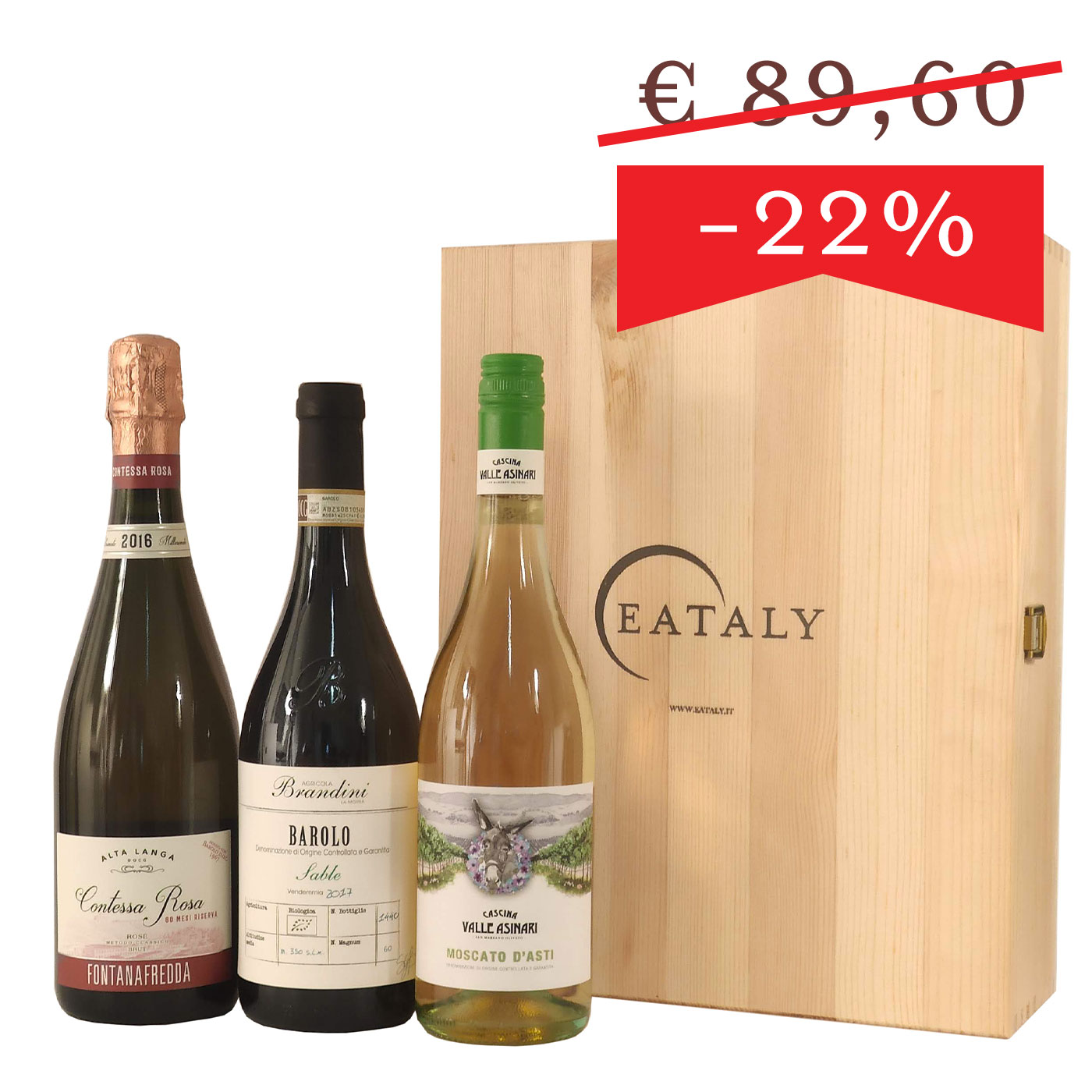 Per contenere al meglio le tre bottiglie e rendere il regalo ancor più elegante una cassetta di legno, per un dono sicuramente apprezzato.