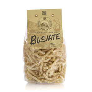 Busiate, Pastificio Morelli. Una pasta unica che celebra la tradizione italiana con il prestigio del grano duro di coltivazione nazionale.