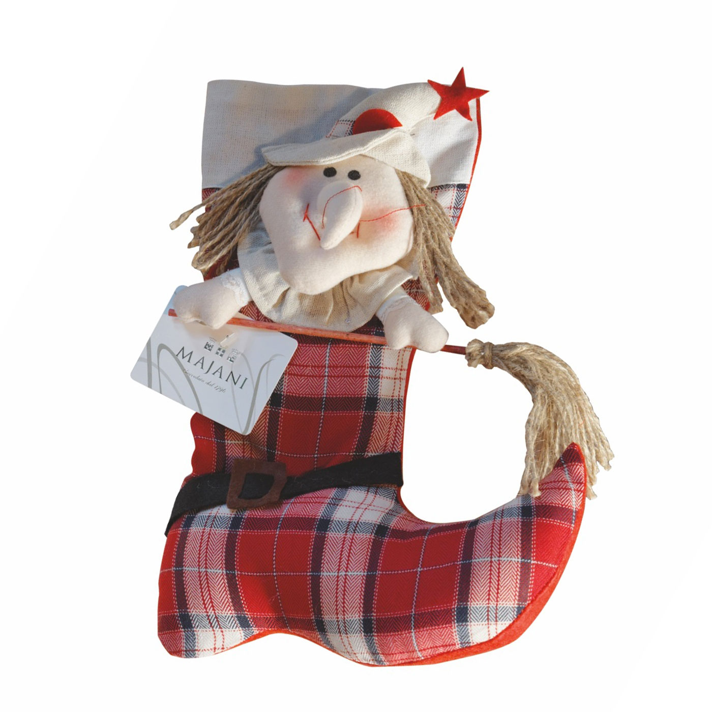 La calza rappresenta l'allegra vecchietta e racchiude una dolcissima sorpresa: le praline di cioccolato assortite, con tutta la qualità che da sempre contraddistingue Majani.