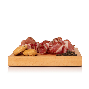 Capocollo di suino grigio di Macelleria Falaschi: dal profumo intenso che riporta a note di legno asciutto. Il finocchio, sul finale, intensifica l'eleganza di questo nobile salume.