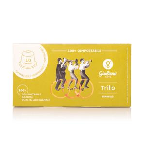 Capsule Caffé Trillo di Giuliano Caffè: delle capsule 100% compostabili e biologiche che ti consentiranno di avere tutto il gusto e la comodità del caffè in capsule e allo stesso tempo di rispettare l'ambiente.