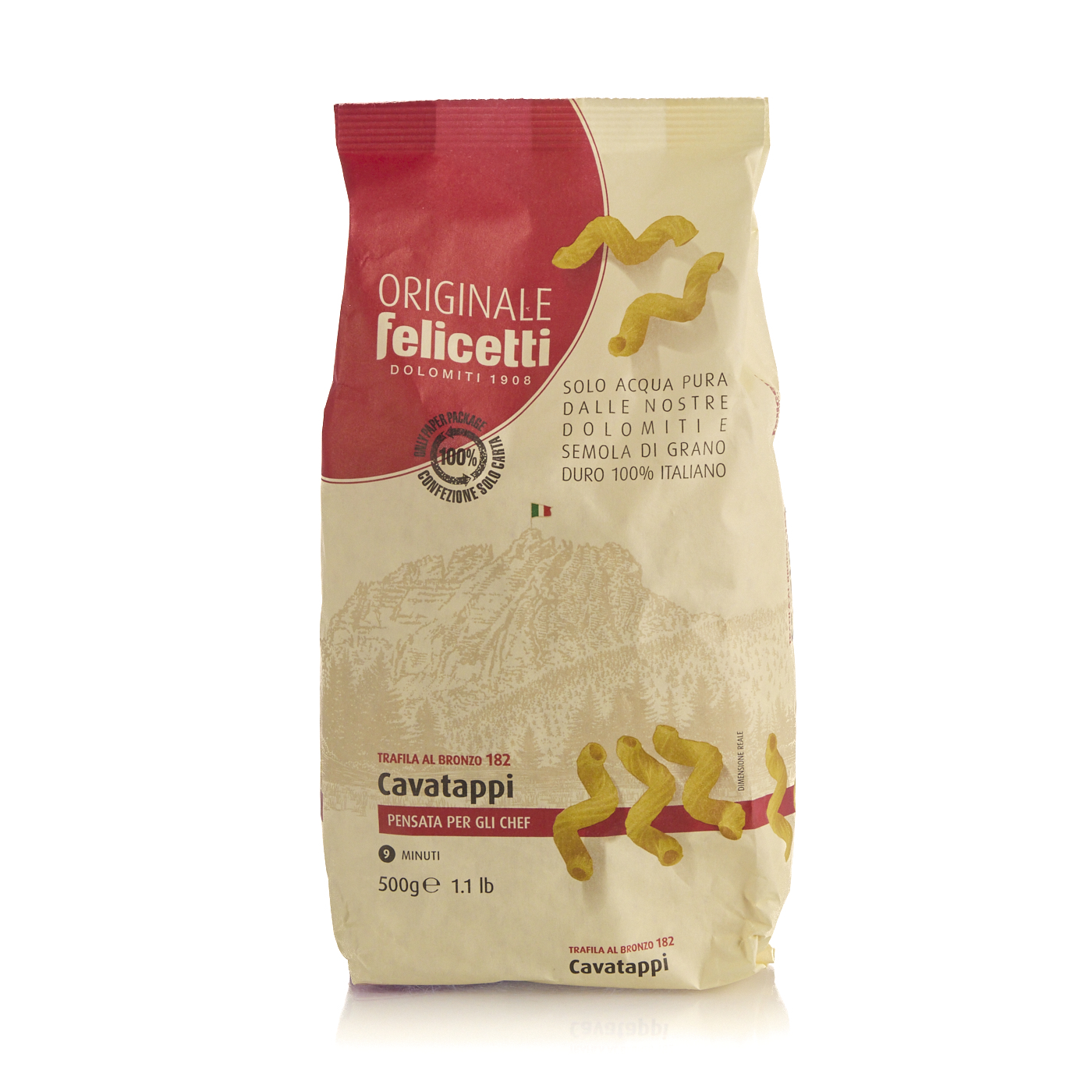 Cavatappi trafila al bronzo 182, Pastificio Felicetti. Una pasta pensata per soddisfare le esigenze degli chef, lavorata con cura nel cuore delle Dolomiti.