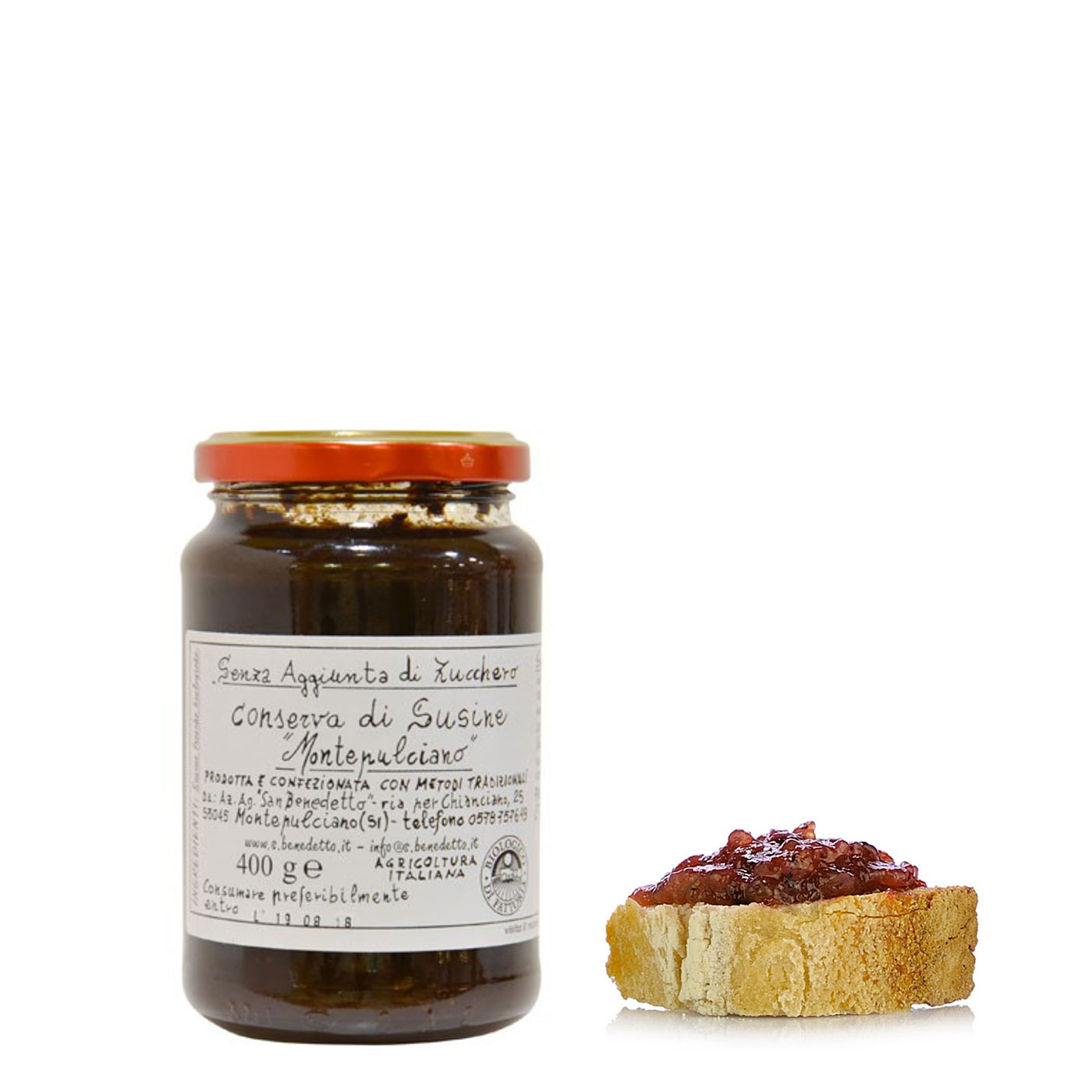 La conserva biologica di susine dell'Azienda agricola San Benedetto è il fiore all'occhiello dell'azienda toscana: nasce infatti da un frutto proveniente da un albero selvatico che cresce solo sulle colline di Montepulciano.