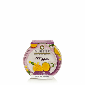 Un dessert al cucchiaio dalla consistenza quasi setosa, che si scioglie in bocca ad ogni golosissimo boccone. Una morbidissima e dolcissima crema alla ricotta si incontra con tutto il sapore di una granella di biscotto e variegato al mango.
