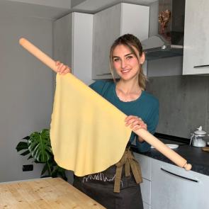 Un percorso completo attraverso la pasta fresca in tutte le sue forme: tortellini sottilissimi, tortelloni generosi, ravioli morbidi e stagionali, eleganti agnolotti del plin, fino alle paste lunghe – tagliatelle, tajarin, busiate – e alle paste corte modellate a mano come un gioco: garganelli, cavatelli, gnocchi. Non mancano impasti per ogni gusto: la pasta solo tuorli dal giallo intenso, quella senza uova dal carattere deciso, le paste colorate agli spinaci, barbabietola o zafferano, e le scenografiche paste bicolore per i giorni speciali. E per portare in tavola un menu più completo, Elena aggiunge anche ricette delicate e perfette per accompagnare ciascun formato: condimenti, ripieni equilibrati, brodi ricchi e sughi che profumano di tradizione.