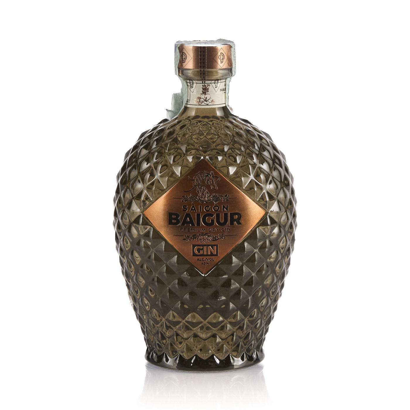Gin premium dry, Saigon Baigur. Un gin che celebra la tradizione vietnamita, realizzato con una selezione di botaniche locali per un'esperienza unica.