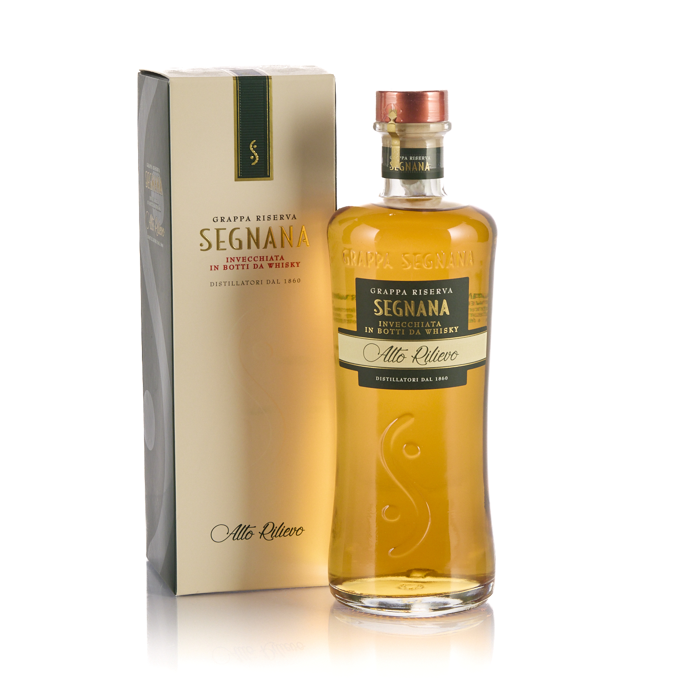 Grappa riserva invecchiata in botti da whisky, Segnana. Una grappa trentina prodotta nella storica distilleria della famiglia Lunelli, con un processo che unisce tradizione e innovazione.