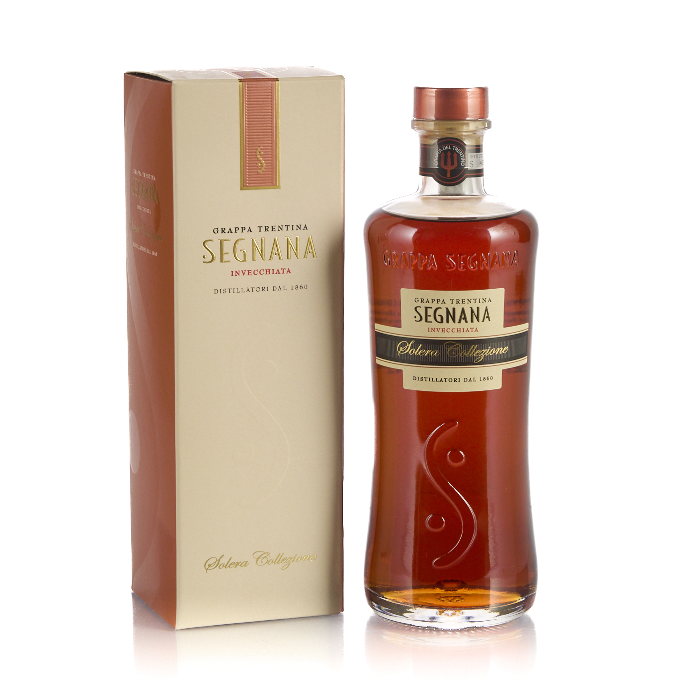 Grappa solera collezione, Segnana. Una grappa trentina prodotta nella storica distilleria Segnana, rinomata per la sua lunga tradizione e maestria nella distillazione.