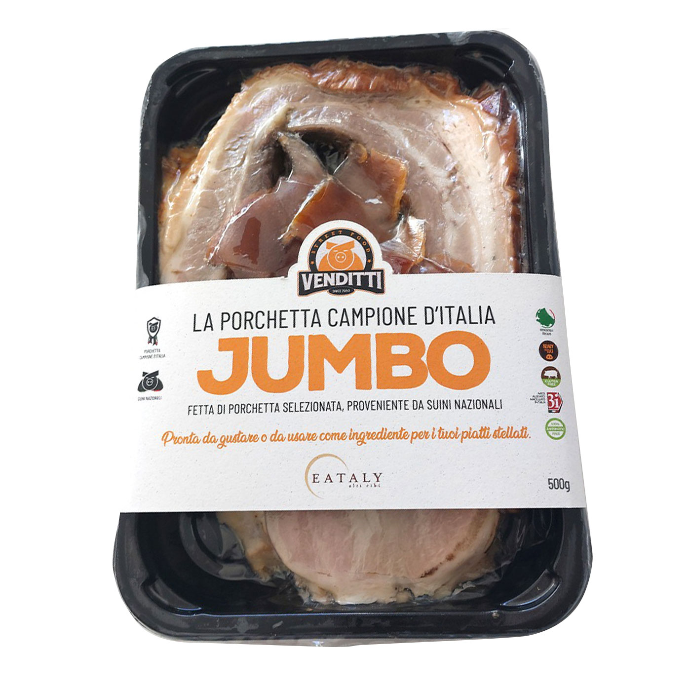 Jumbo Tradizionale di Venditti: la porchetta campione di Italia, qui in un taglio tradizionale che ti permetterà di assaporarne al meglio lo straordinario gusto.