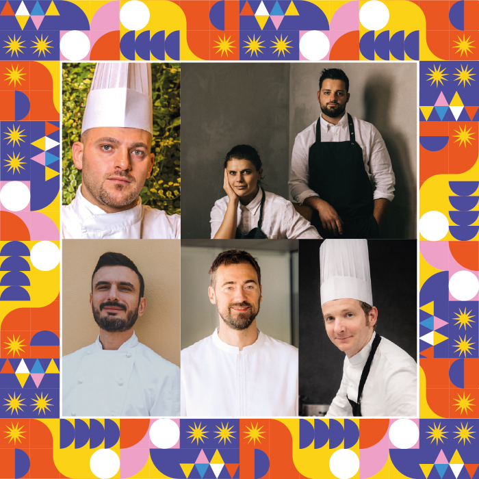 A cucinare per te ci saranno: Luca Mussi, executive chef di Eataly, Sara Scarsella e Matteo Compagnucci del ristorante Sintesi di Ariccia, 1 stella Michelin, Simone Tricarico del ristorante Thelema di Gaggiano, Lorenzo Sacchi del ristorante Il circolino di Monza, 1 stella Michelin e il pasticcere Galileo Reposo.