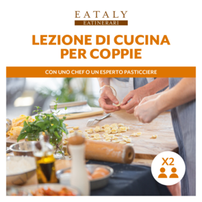 La Lezione di cucina per coppie di Eataly è l'ideale per vivere un'esperienza indimenticabile in coppia! Pensata per tutti i buongustai e gli amanti del cibo, prevede una lezione con uno chef esperto o un pasticciere e ti permetterà di condividere la tua passione con chi vuoi.