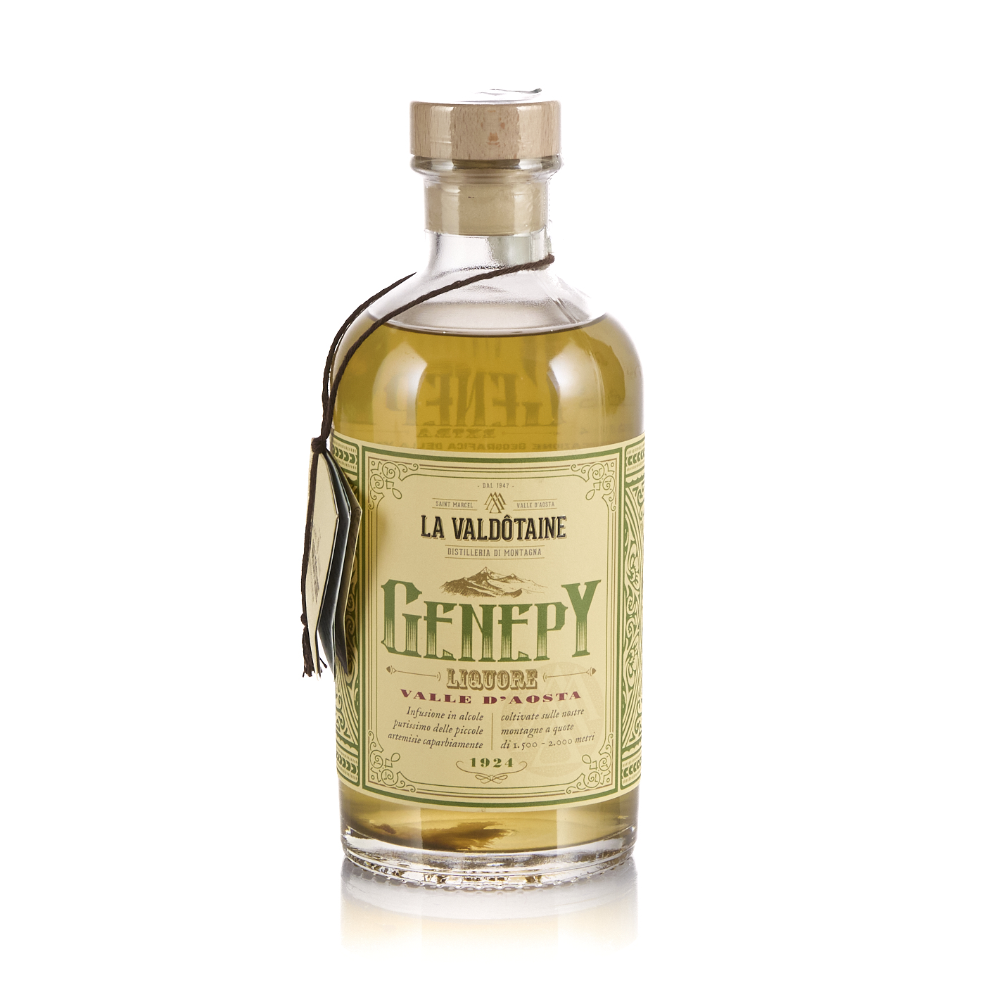 Liquore genepy Valle d'Aosta IGP, La Valdotaine. Un liquore che racchiude l'essenza delle montagne valdostane, realizzato con erbe aromatiche selezionate e un'attenzione particolare alla tradizione.