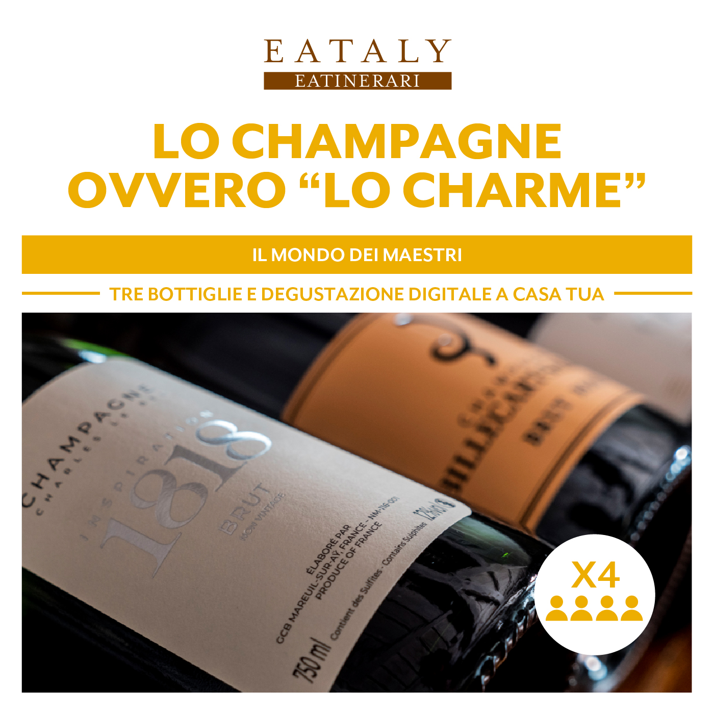 Il mondo dei maestri - Lo champagne ovvero "lo charme". Una selezione di champagne prestigiosi spediti direttamente a casa tua e arricchiti da un video esclusivo in cui Marcelo Barberis, famoso esperto di vini francesi, ti guiderà nella degustazione.
