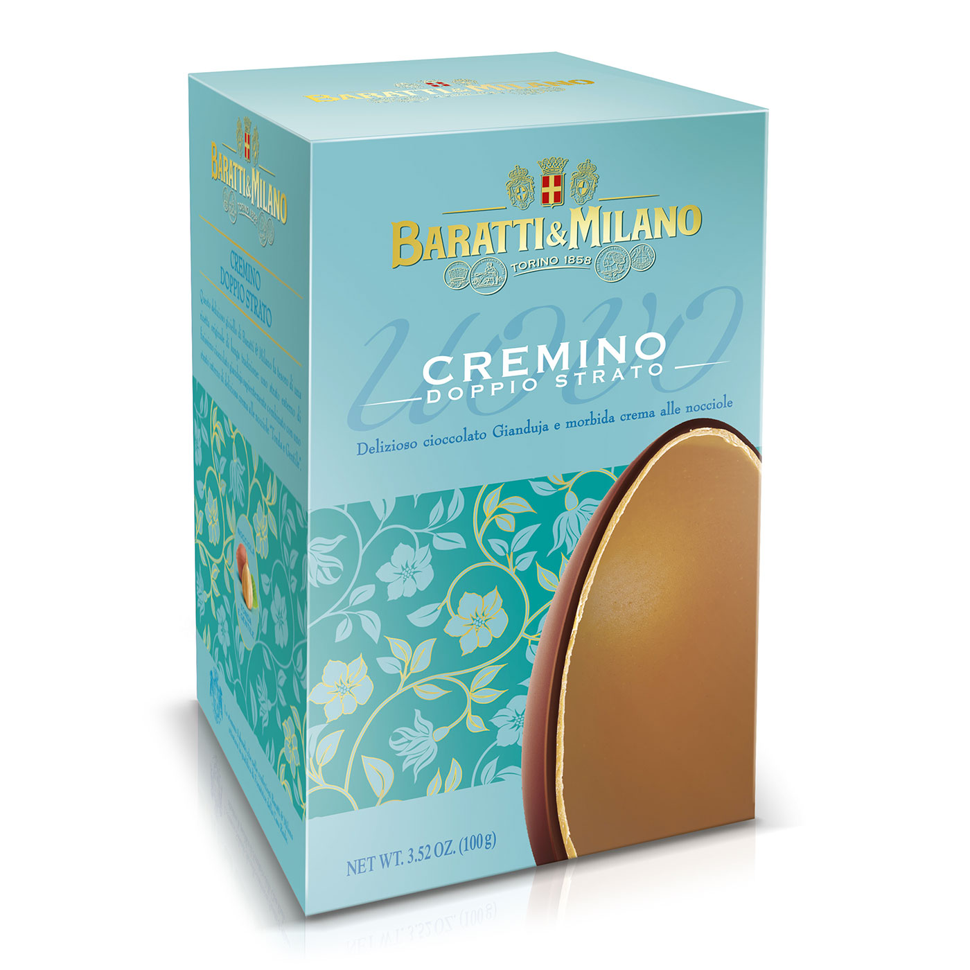 Il cremino è famoso ed apprezzato per la sua cremosità e l'armonia raggiunta tra i diversi strati che lo compongono, e Baratti & Milano ne realizzano una golosissima versione in formato uovo, seguendo la ricetta tradizionale dei maestri cioccolatieri piemontesi. L'uovo è composto da due diversi strati di cioccolato, in cui si alternano un purissimo cioccolato gianduia ad una morbida e vellutata crema di nocciola tonda gentile, per un risultato che ti farà venire l'acquolina in bocca.