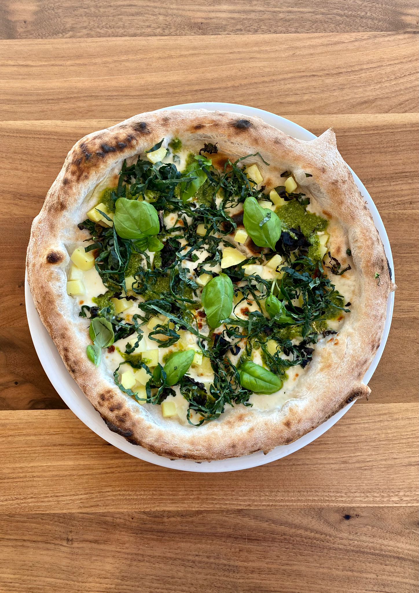 GENOVA: Bianca con crescenza, patate, cavolo nero (in cottura) e pesto di Prà.