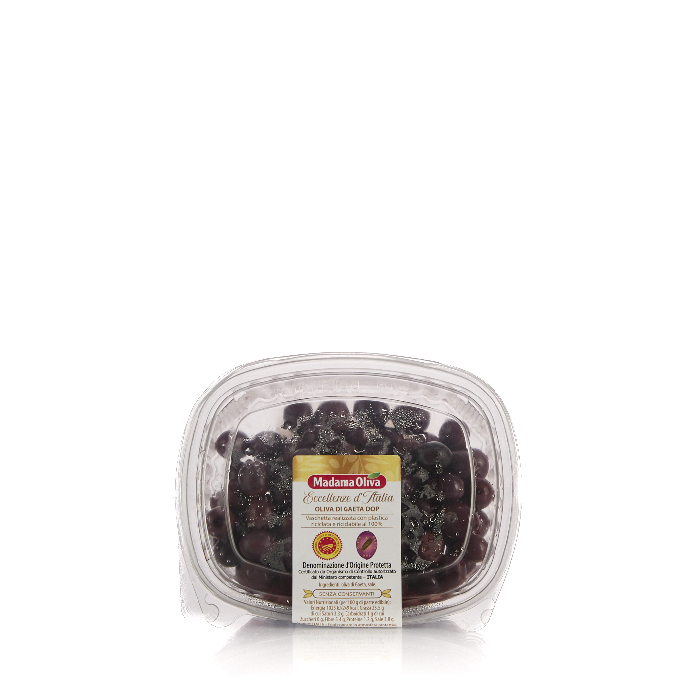 Olive di Gaeta DOP, Madama Oliva. Una selezione di olive italiane certificate con Denominazione d’Origine Protetta, senza conservanti aggiunti.