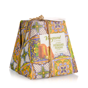Pandoro con crema al pistacchio Sicily Trip, Vergani. Un dolce da forno che combina la tradizione del pandoro con la ricchezza della crema al pistacchio, per un’esperienza di gusto unica.
