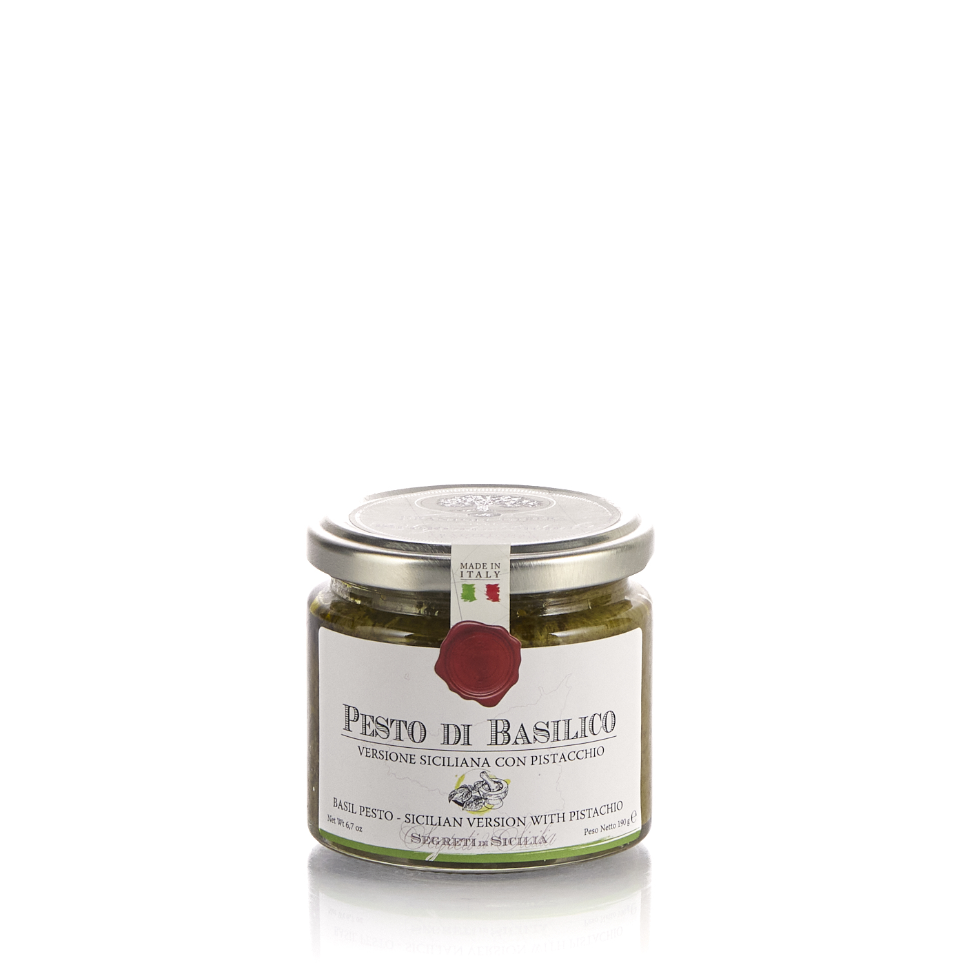 Pesto di basilico versione siciliana, Segreti di Sicilia. Una reinterpretazione autentica del tradizionale pesto italiano, arricchito da ingredienti tipici della cucina siciliana.