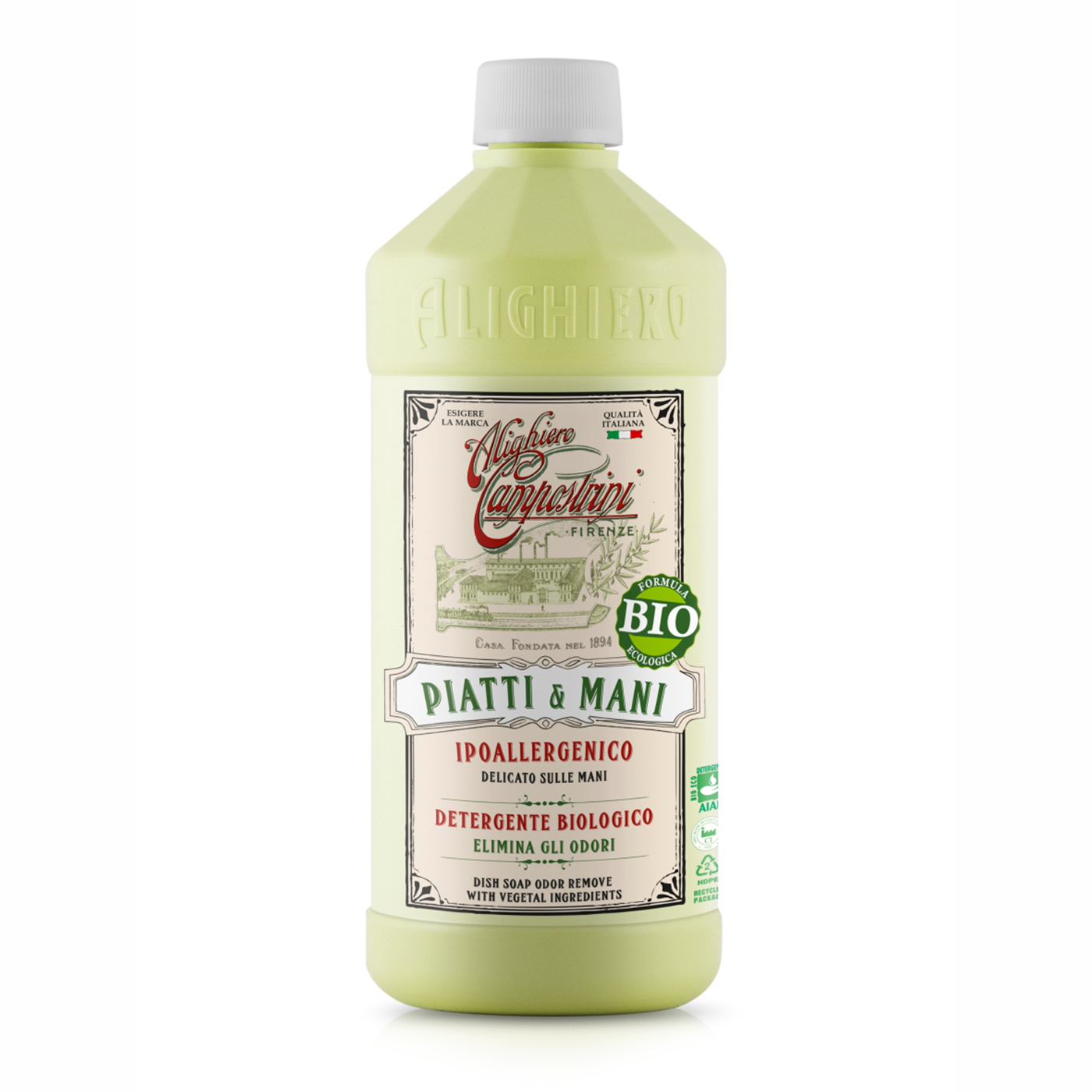 Piatti e Mani Bio al Limone di Campostrini Green: un prodotto biologico, realizzato a partire da principi attivi di origine vegetale e utilizzando flaconi provenienti da plastica riciclata.
