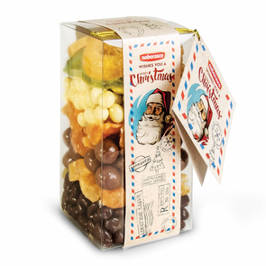 Si tratta di un mix di frutta disidratata e di frutta ricoperta di cioccolata, per un dolcetto semplice ma gustoso con cui terminare il pasto. All'interno troverai una leccornia per tutti i gusti: zenzero, limone, melone, ananas al cioccolato bianco e yogurt, mandorle al cioccolato confettate e zenzero al cioccolato fondente. Insomma, un vero tripudio di gusti e sapori per un dolce originale e gustoso.