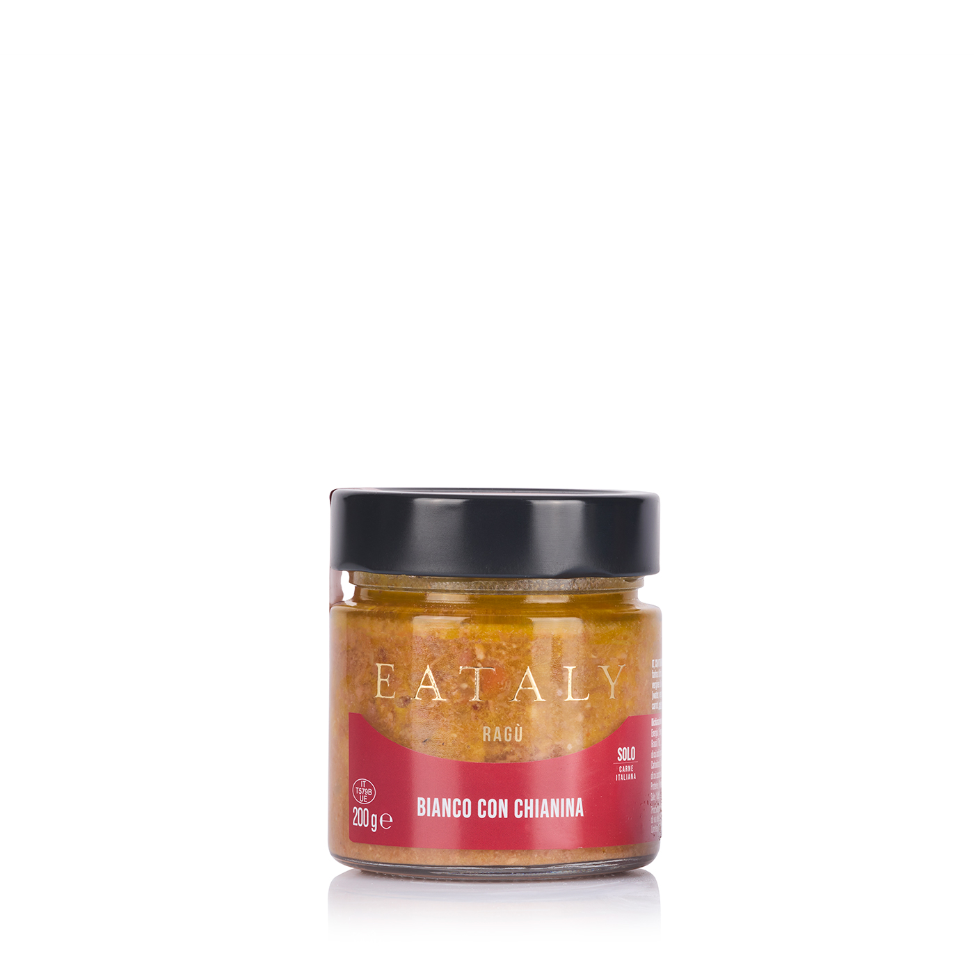 Il Ragù Bianco con Chianina Eataly è un omaggio alla cucina toscana, preparato con la pregiata carne di Chianina e ingredienti selezionati.