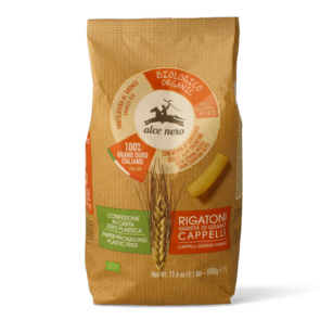 Rigatoni di Grano Duro Cappelli Bio di Alce Nero: una pasta di altissima qualità perfetta per creare dei primi piatti da leccarsi i baffi in modo semplice e veloce.