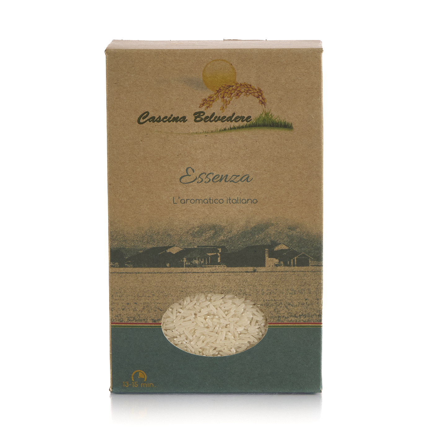 Riso aromatico Essenza L'aromatico italiano, CascinaBelvedere. Un riso dal profumo unico, nato dalla combinazione tra una varietà tailandese e il rinomato basmati pakistano.